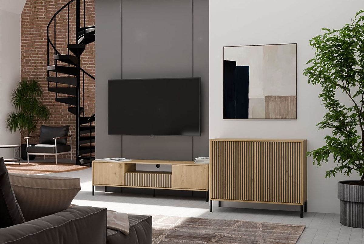 FARBA: DUB ARTISANELEGANCIA A PRAKTICKOSŤ V JEDNOMKomoda KAMARO 2D SLIM je kombináciou estetiky a funkčnosti, ktorá sa dokonale hodí do obývacej izby, hosťovskej izby, spálne alebo pracovne. Vďaka ryhovanému prednému panelu dverí (pripomínajúcemu lamely) získava nábytok moderný a originálny vzhľad, ktorý sa perfektne hodí do súčasných interiérov.