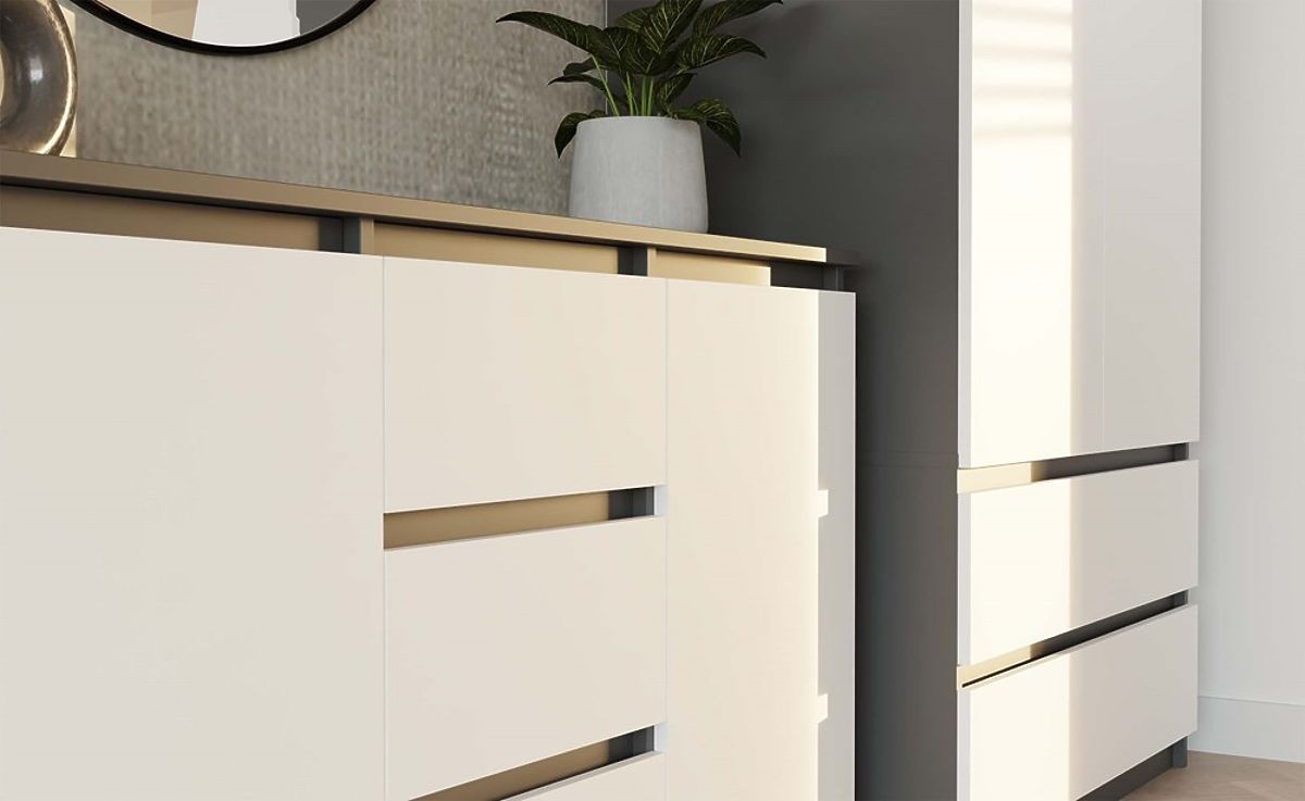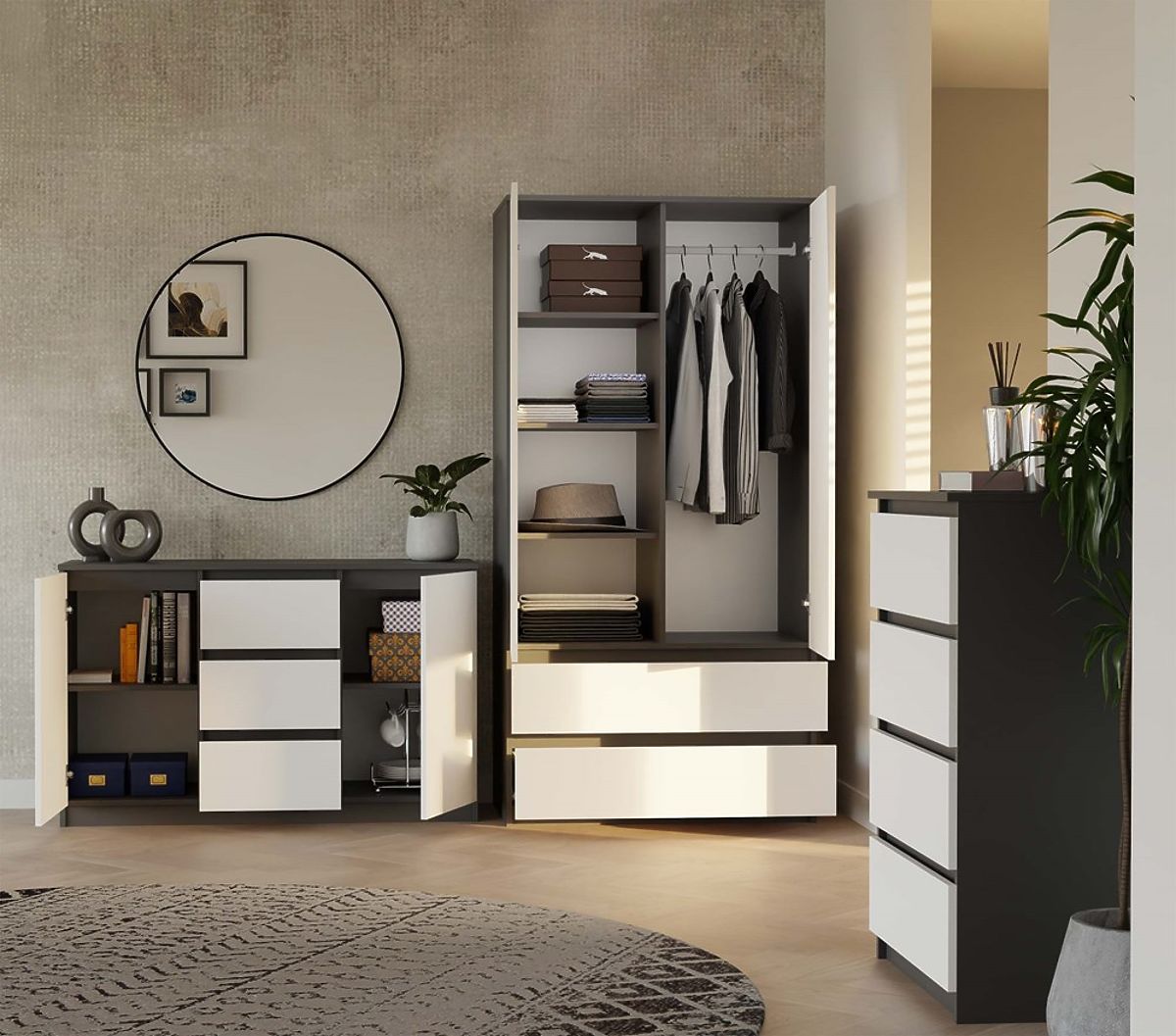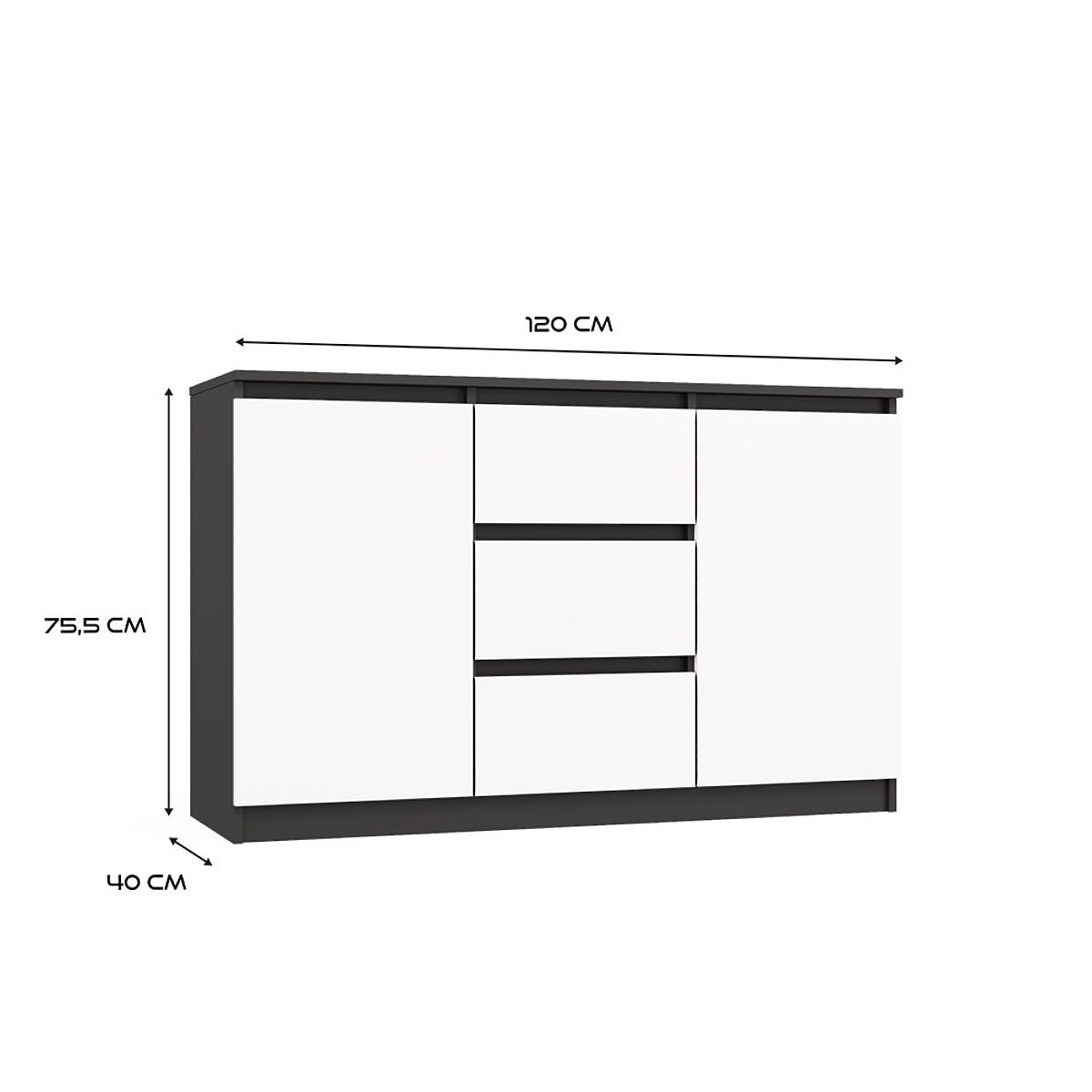 Moderná komoda s antracytovým korpusom a bielymi frontmi. .. viac