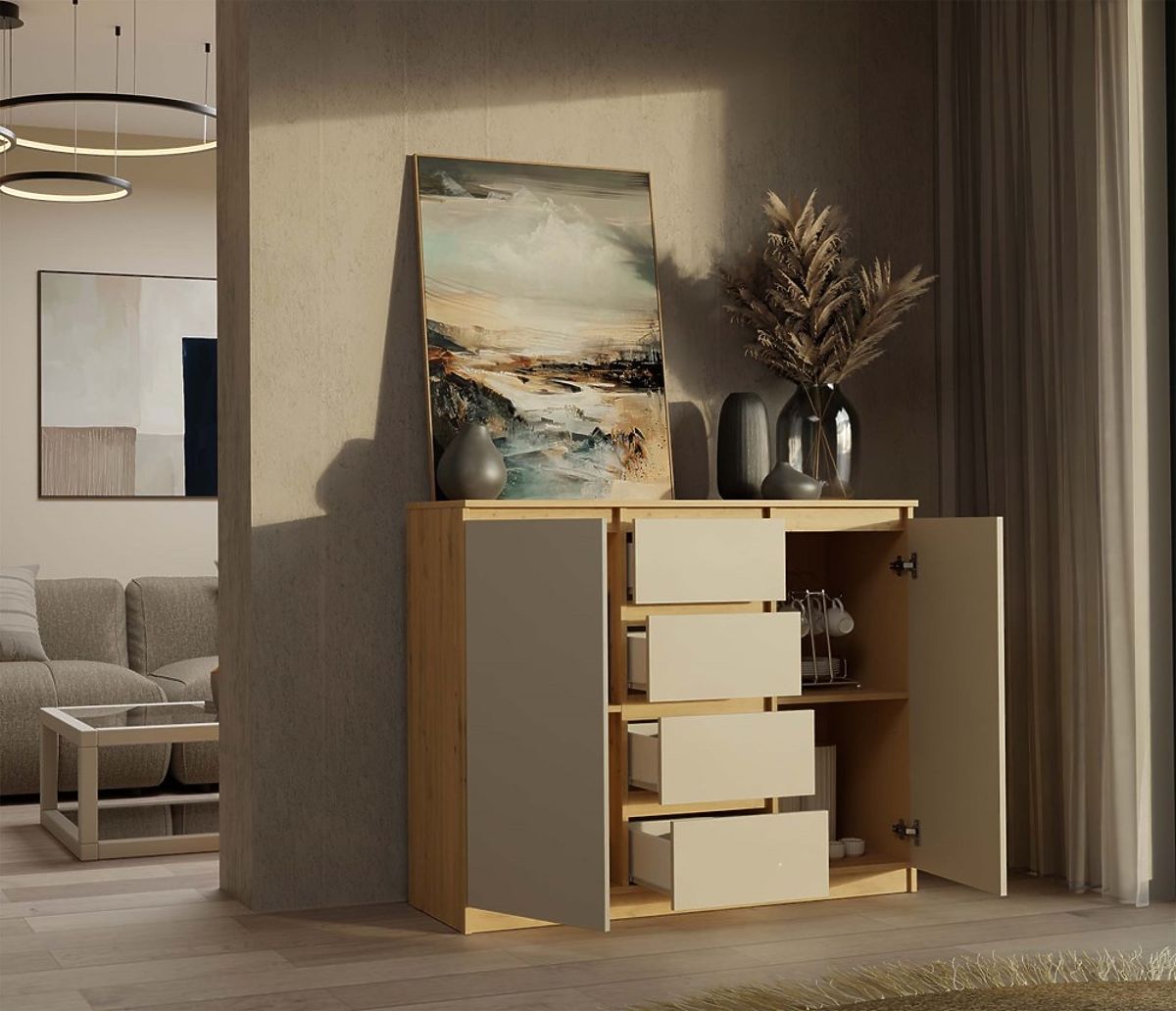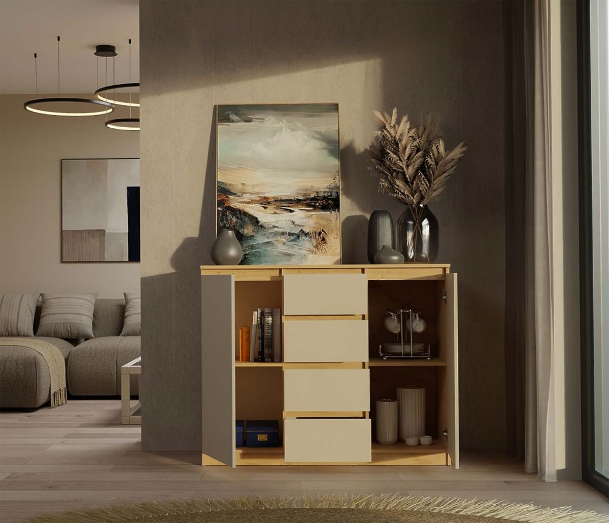 Babynabytek.sk » Detský nábytok / Komody a skrine / Komody / Komoda Malwa 2D4S 120 DUB ARTISAN KAŠMÍR BÉŽOVÁ
