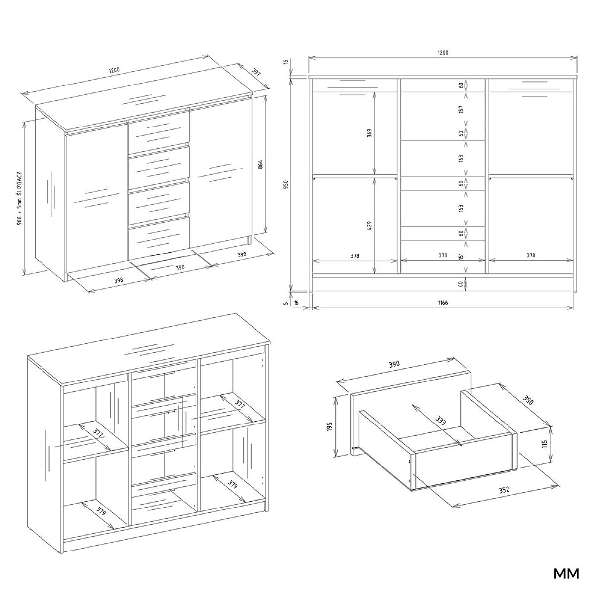 Komoda s dvoma dvierkami a štyrmi zásuvkami pre priestranné úložisko. .. viac