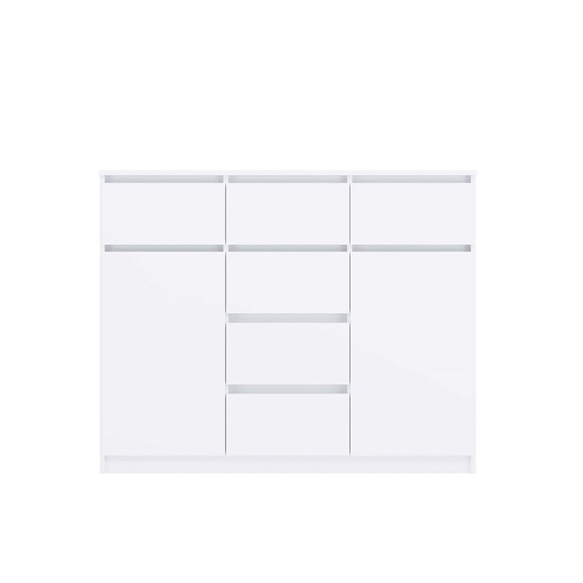 • Univerzálny dizajn: Jednoduchá, elegantná forma komody v matnej bielej farbe zaisťuje, že sa hodí ako do moderných, tak klasických interiérov. Bezúchytkové čelné plochy zdôrazňujú minimalistický charakter a zároveň zaisťujú pohodlné používanie.