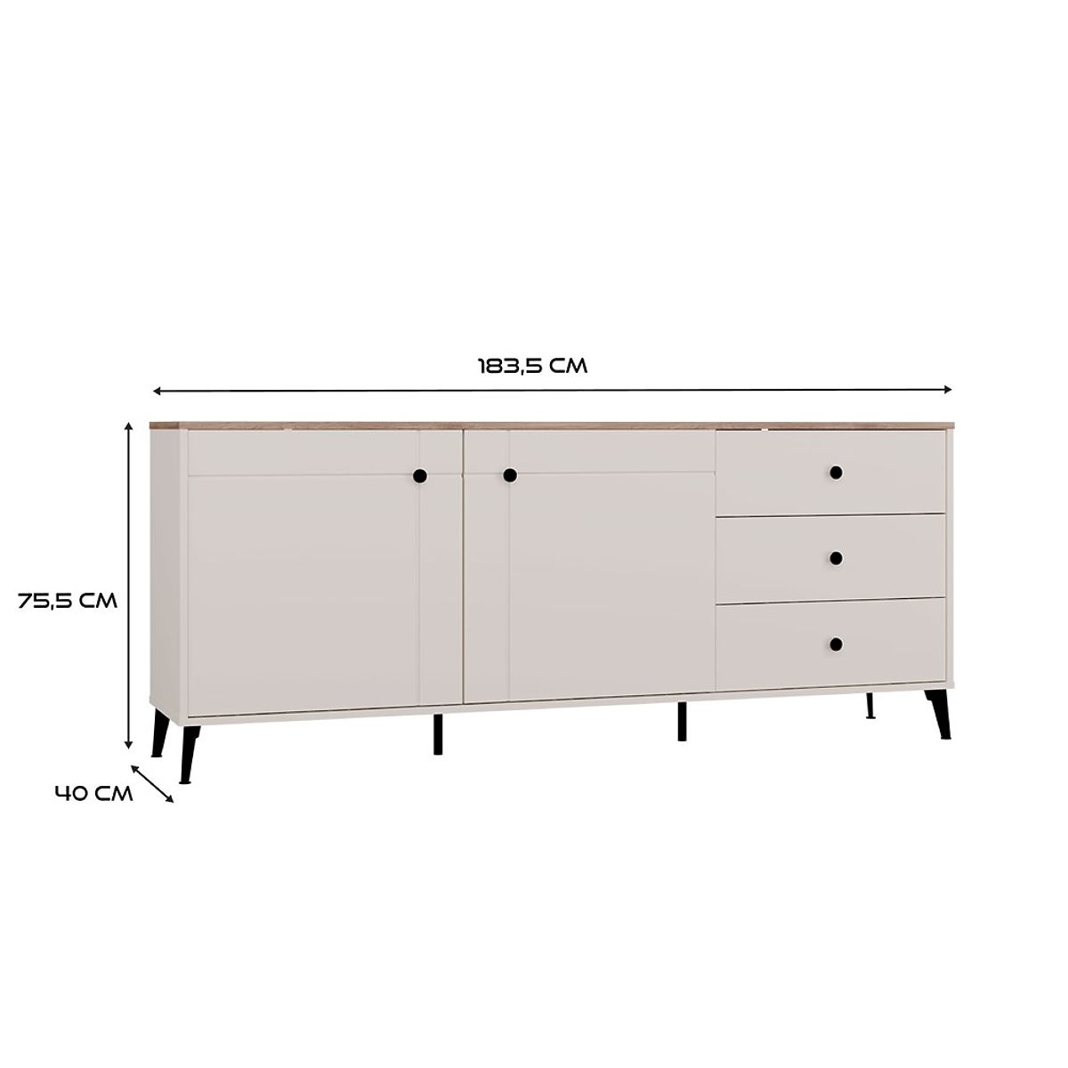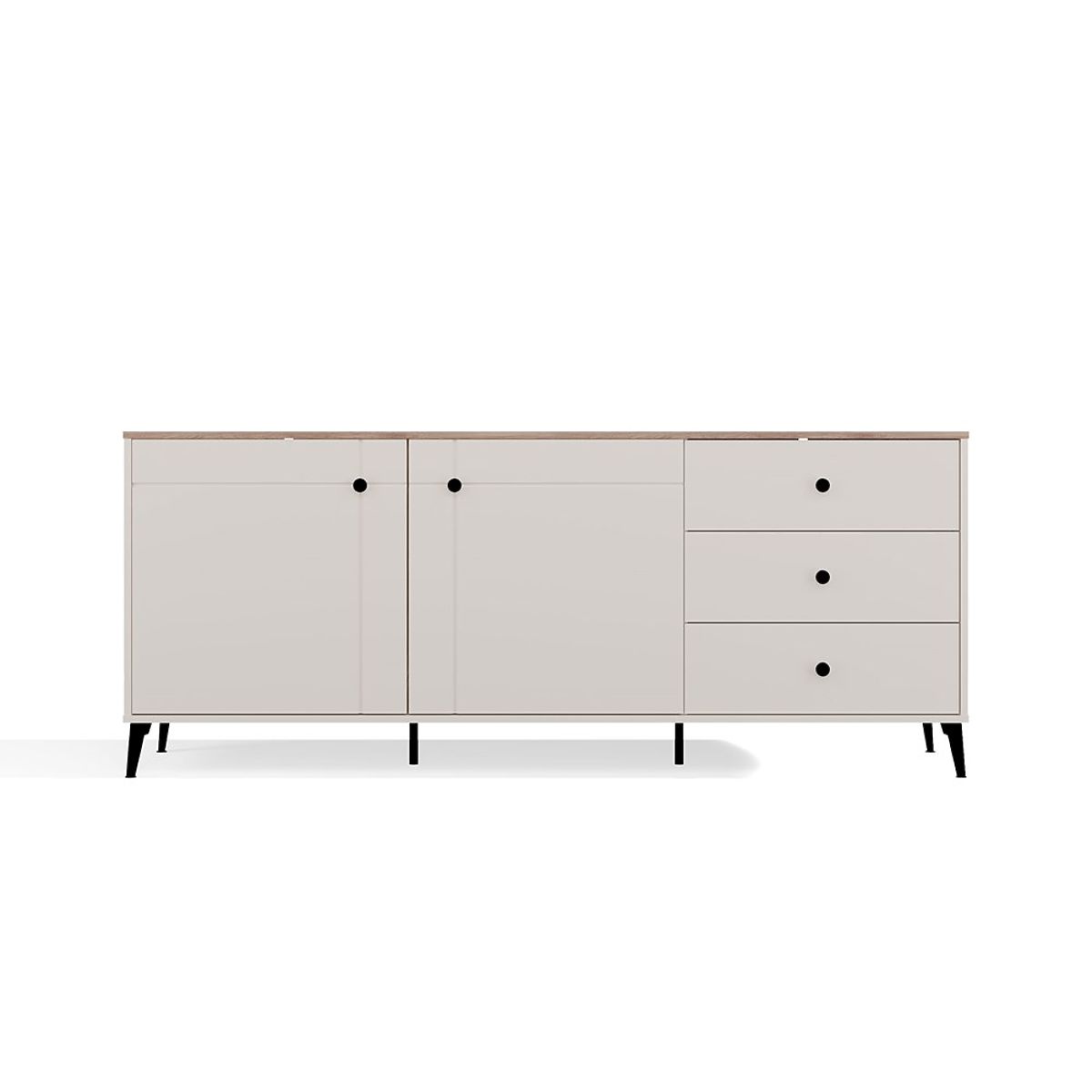 Usporiadanie 2 dverí a 3 zásuviek poskytuje dostatok úložného priestoru – ako pre každodenné potreby, tak pre veci, ktoré chceme mať mimo dohľadu.