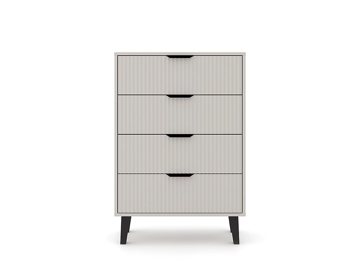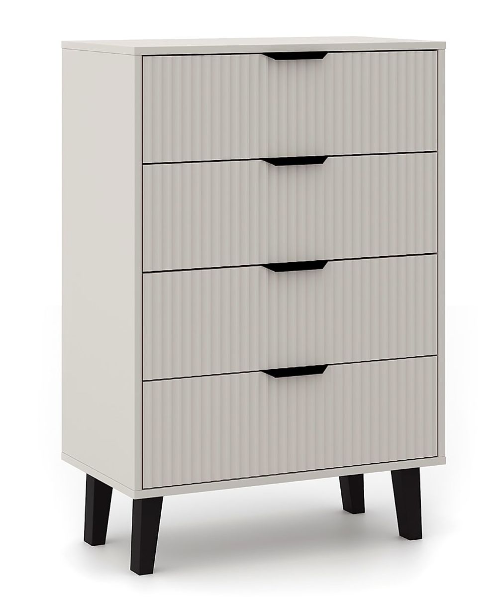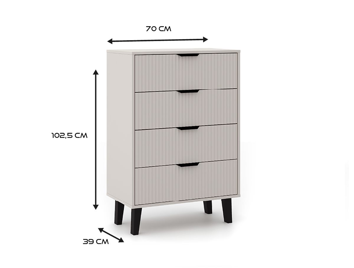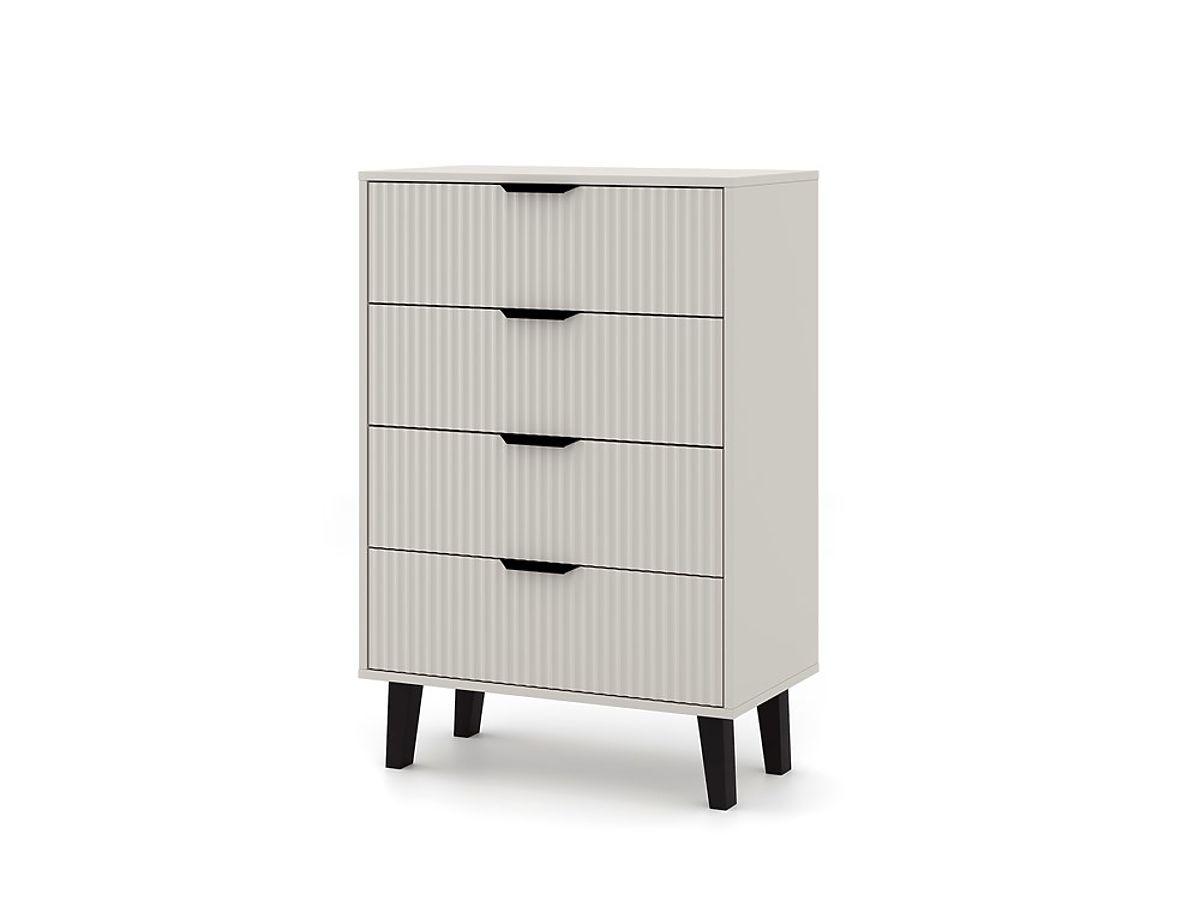 Komoda s moderným dizajnom a drážkovanými čelami v béžovej farbe. .. viac
