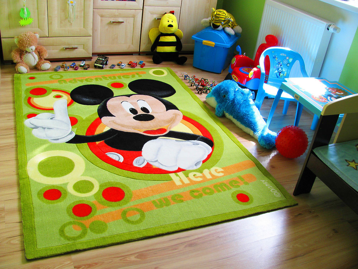Krásny detský koberec kusový do izby z kolekcie Disney s motívom Mickeyho Mouse. Koberec má originálnu licenciu Disney a je hustý, hebučký a farebný! Hustota str. vlasu 114.000 pkt./m2 hmotnosť 2,40 kg/m2, materiál: 100% akryl(termoplastický).