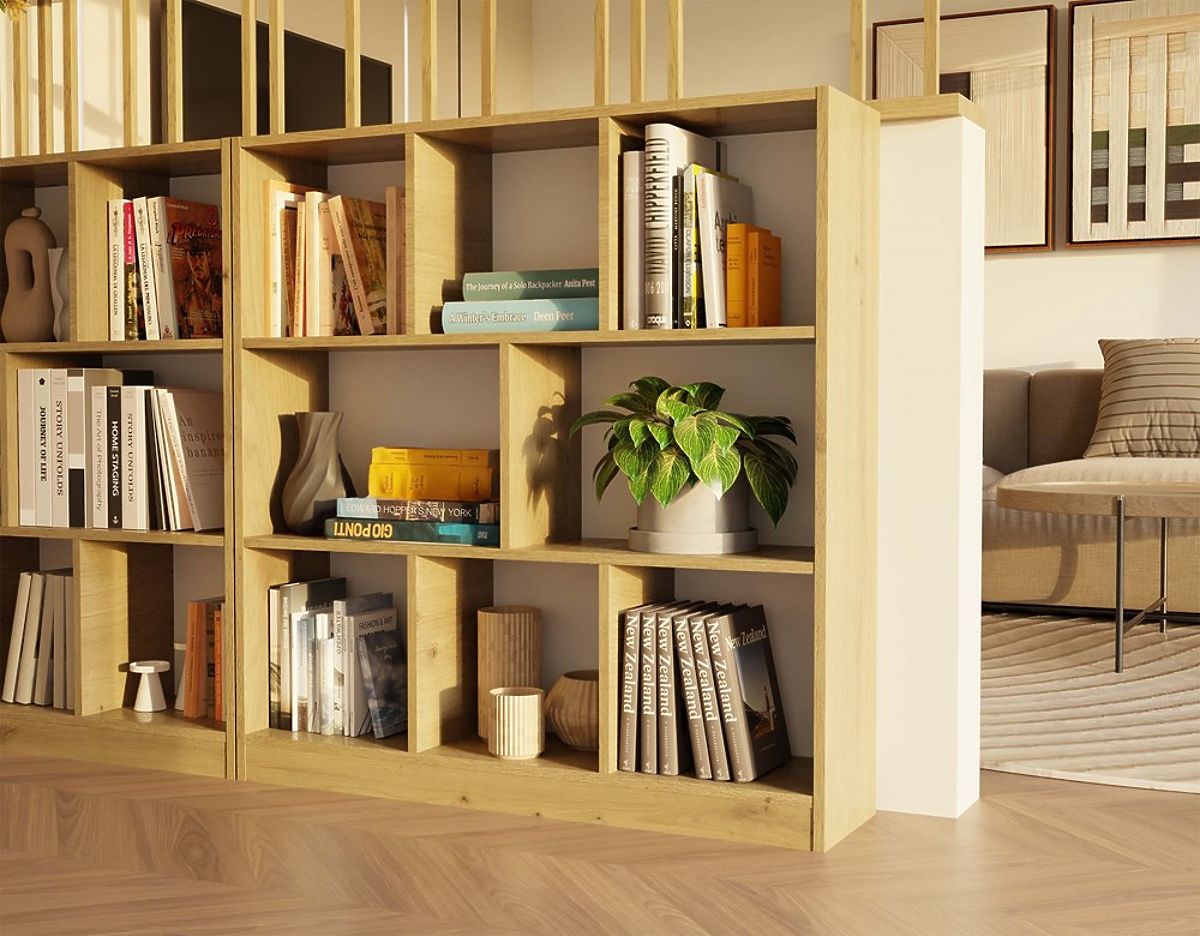 8 funkčných políc/priehradiek – ideálnych na knihy, dekorácie alebo úložné boxy.