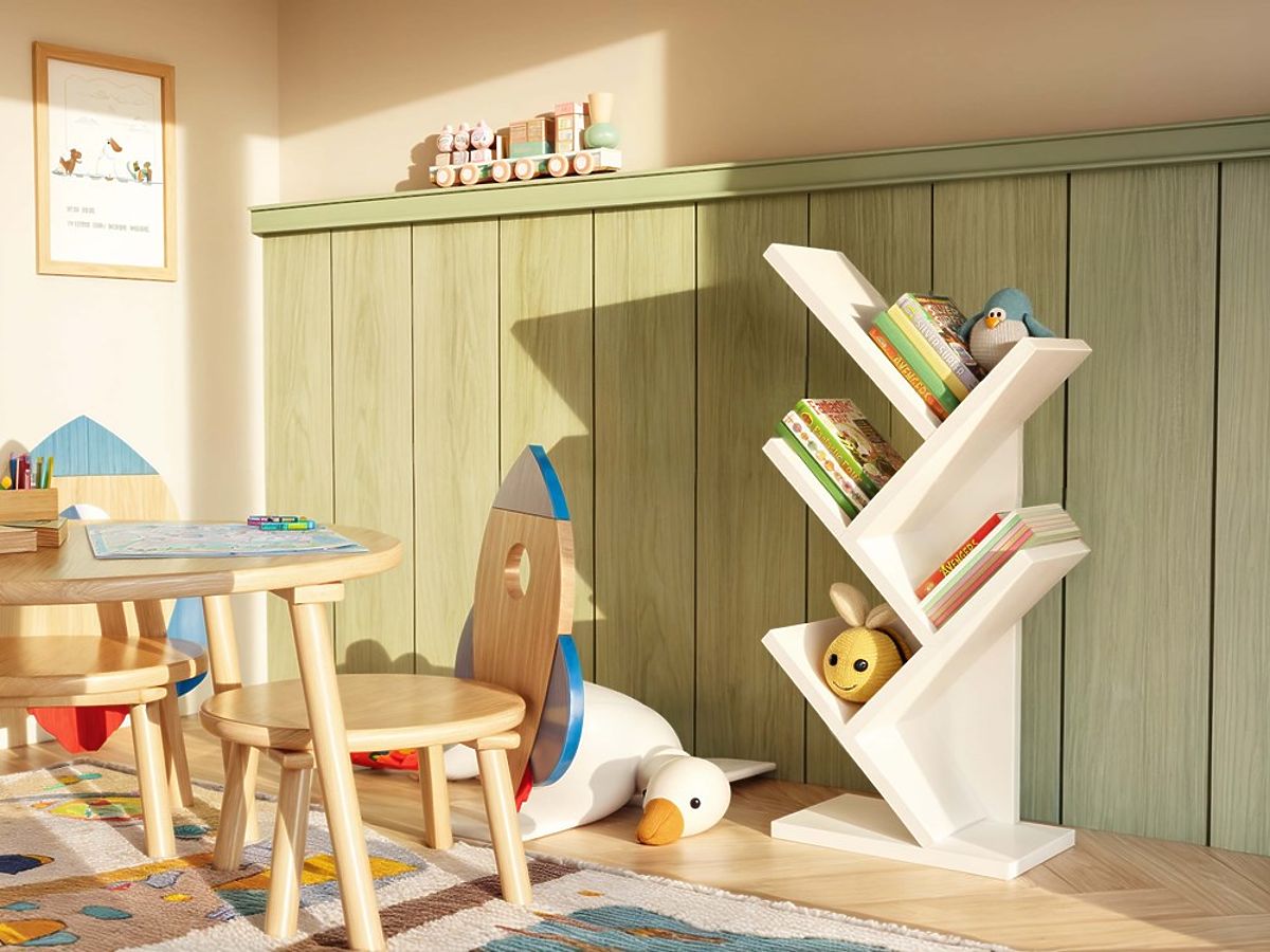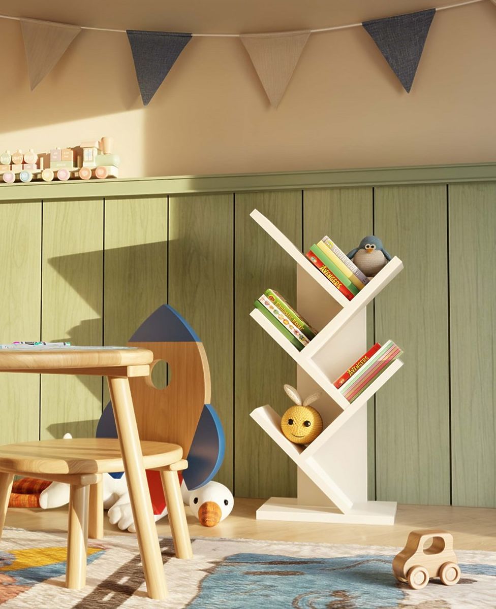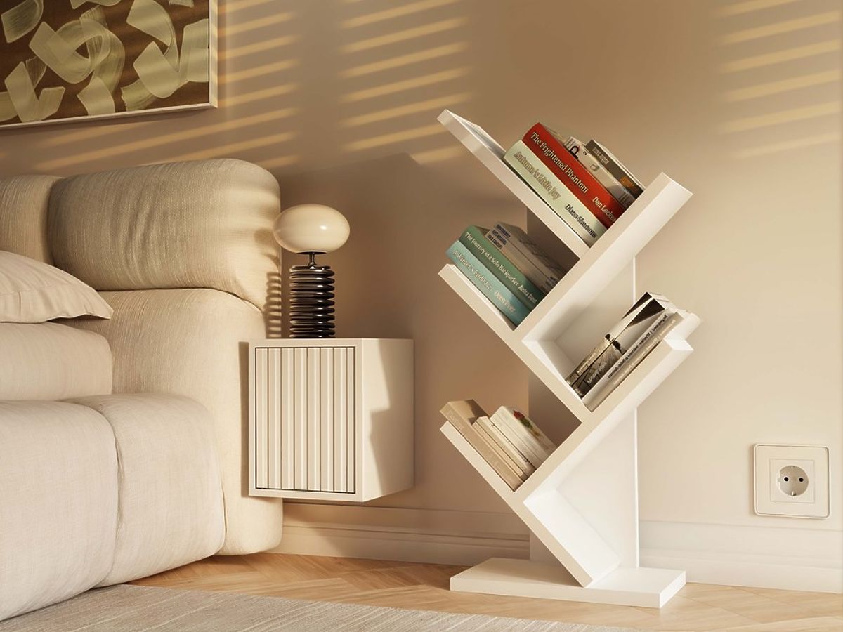 4 šikmé otvorené police – ideálne na knihy, šanóny, dekorácie alebo hračky