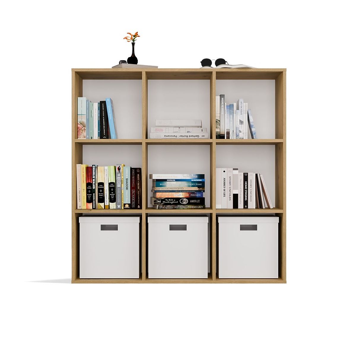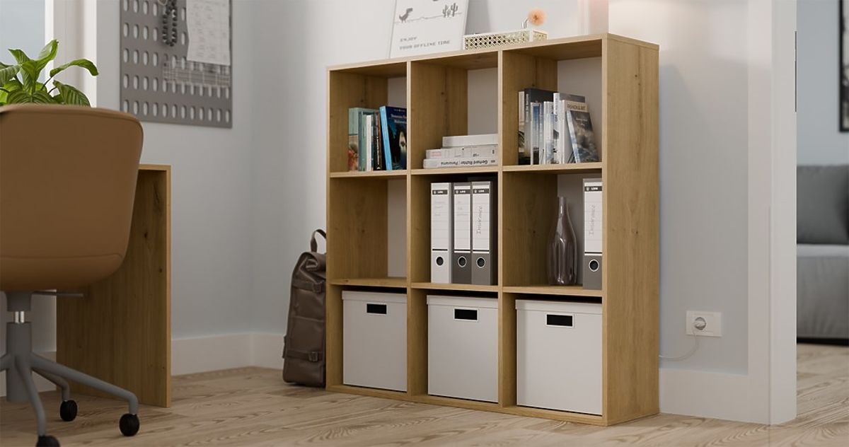 Babynabytek.sk » Knižnice, regále a poličky / Regály / REGÁL MALAX 3x3 H DUB ARTISAN S PEVNÝM ZADNÝM HDF POLICAMI 110x110 CM