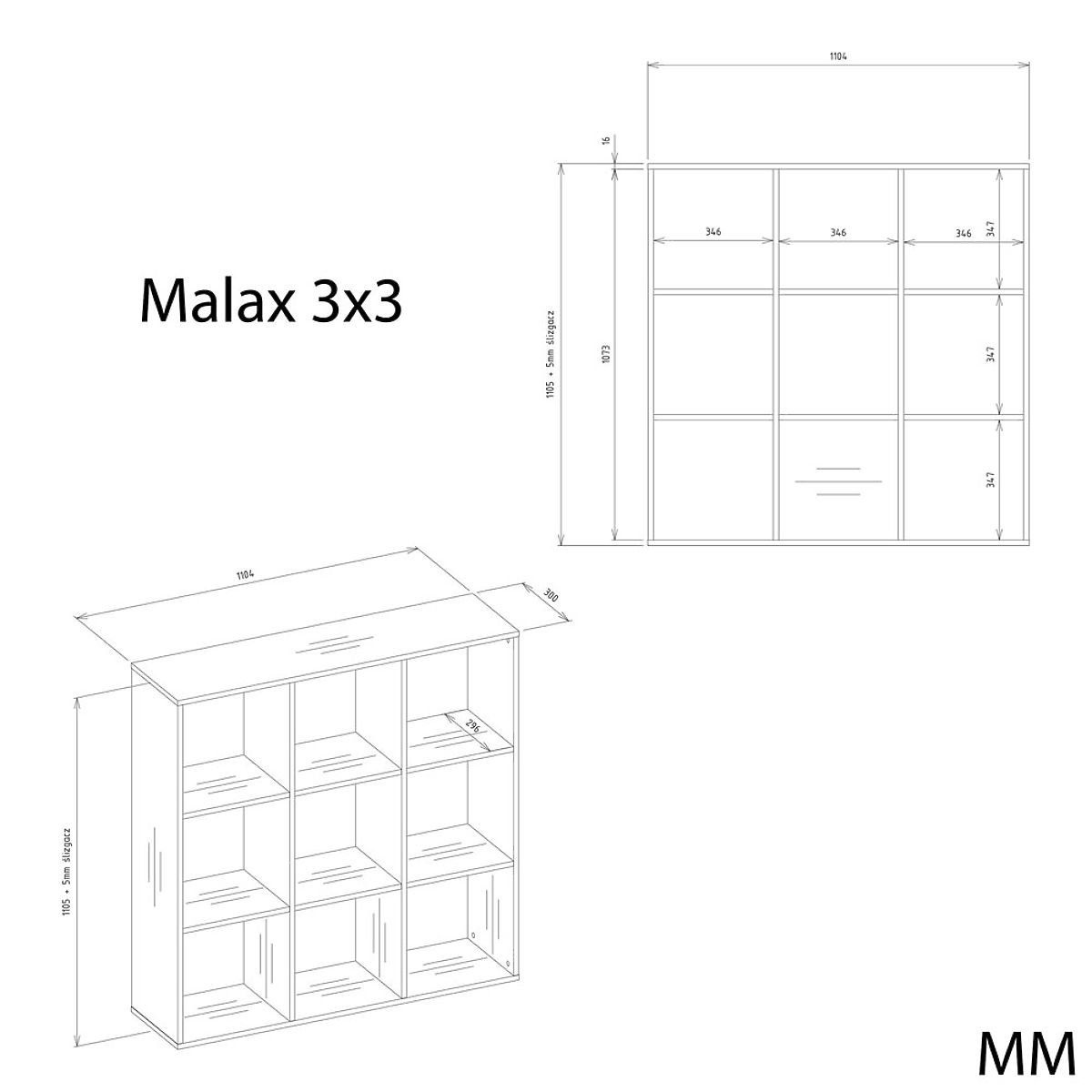 Regál MALAX 3x3 H s deviatimi komorami a pevným zadným panelom. .. viac