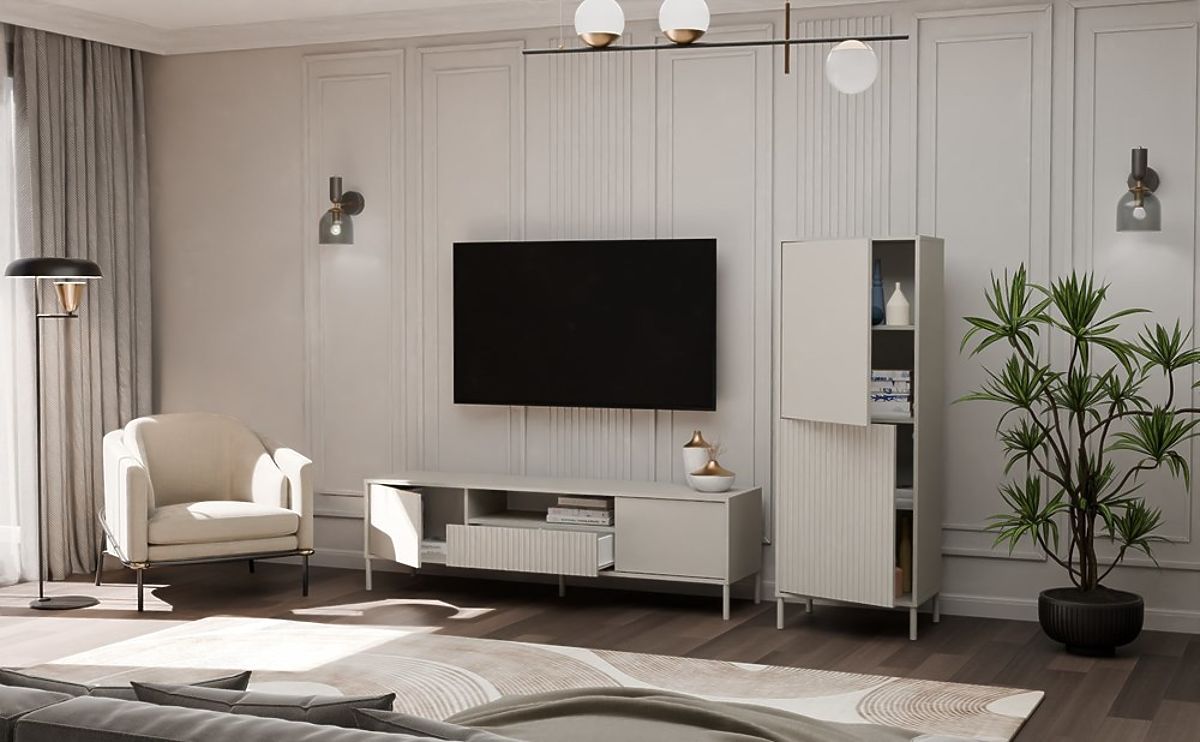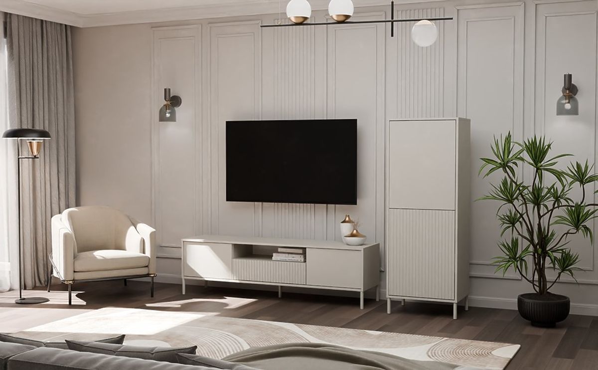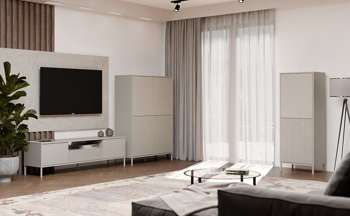ELEGANCIA A PRAKTICKOSŤ V JEDNOMVitrína KAMARO 2DK SLIM/HLADKÝ KAŠMÍR je kombináciou estetiky a funkčnosti, ktorá sa dokonale hodí do obývacej izby, hosťovskej izby, spálne alebo pracovne. Kombinácia dverí s hladkým čelným panelom a dverí s ryhovaným čelným panelom pripomínajúcim lamely dodáva charakter, a systém TIP-ON umožňuje pohodlné používanie bez úchytiek. Nábytok poskytuje dostatok úložného priestoru a zároveň je štýlovým prvkom v modernom interiéri.