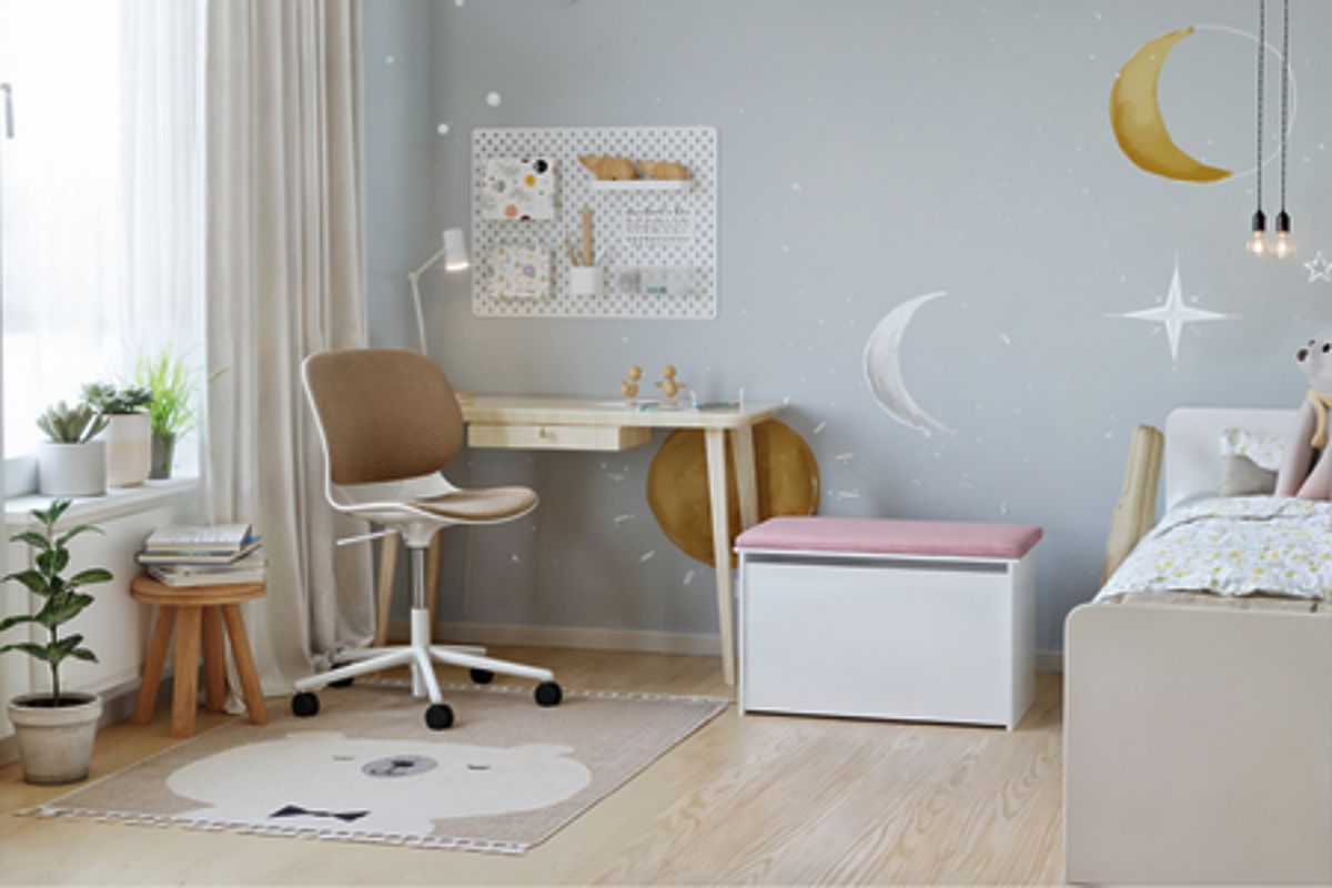 Truhlica DARIA kombinuje priestrannosť s estetickým vzhľadom, vďaka čomu je ideálnym riešením pre každú detskú izbu, ale rovnako dobre sa hodí aj do iných častí domu, ako je predsieň alebo spálňa. Čalúnené sedadlo, pokryté mäkkým materiálom, zaisťuje pohodlie, umožňujúce dieťaťu sedieť na nej počas hry alebo obliekania. Vďaka pevnému plynovému piestu sa veko truhlice otvára plynule a bez námahy, čo umožňuje dieťaťu jednoduché a bezpečné používanie jej obsahu. Priestranný interiér umožňuje ukladanie hračiek, kníh a ďalších drobností, vďaka čomu bude izba vždy udržiavaná v poriadku. Vďaka svojmu dizajnu a funkčnosti sa truhlica DARIA stáva nielen praktickým prvkom, ale aj estetickým akcentom v detskej izbe.