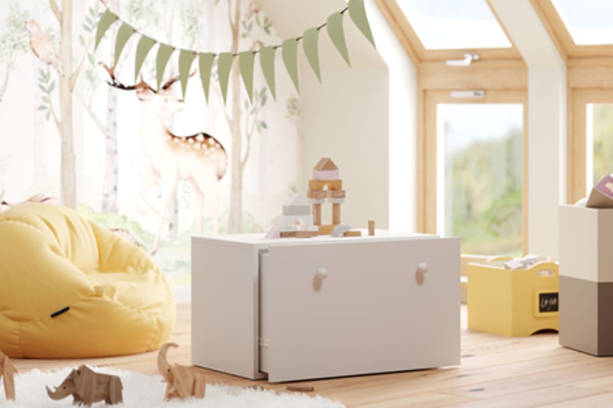 Priestranná truhlica na hračky s moderným dizajnom. .. viac