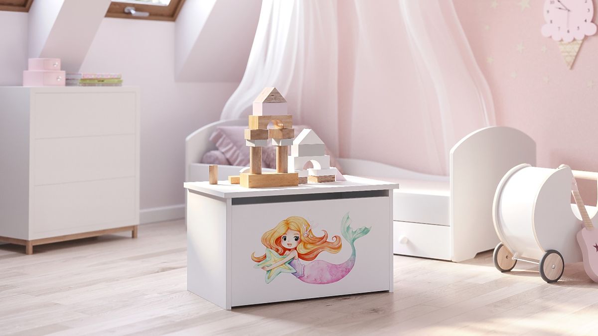 Babynabytek.sk » Detský nábytok / Komody a skrine / Truhly na hračky / Truhlica na hračky Daria biela s potlačou Morská panna