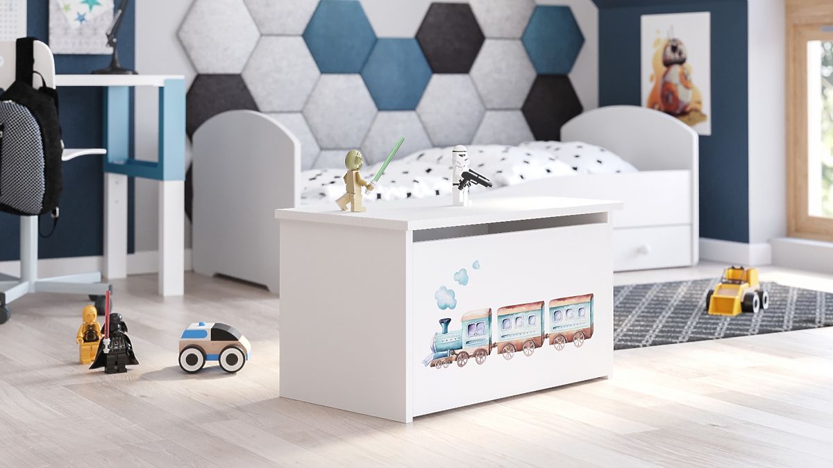 Babynabytek.sk » Detský nábytok / Komody a skrine / Truhly na hračky / Truhlica na hračky Daria biela s potlačou Vlak
