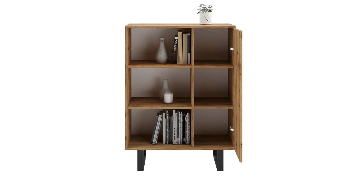 Skriňa FONDI je mimoriadne funkčným nábytkom pre vašu obývačku, ktorý kombinuje jednoduchosť s pútavým vzhľadom inšpirovaným loftovým štýlom. Vďaka minimalistickým formám a surovým materiálom, ako sú kovové prvky a drevo, prináša skriňa do interiéru jedinečnú atmosféru a charakter. Je to ideálne riešenie pre tých, ktorí oceňujú praktickosť a moderný dizajn v jednom. Skriňa FONDI je funkčná aj estetická, ponúka priestor na ukladanie a možnosť vystaviť obľúbené dekorácie.