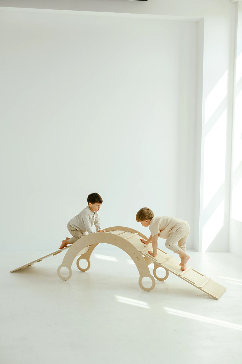 Obojstranné dosky sú navrhnuté s ohľadom na rozmanitosť pohybových aktivít. Hladká strana slúži ako šmykľavka, zatiaľ čo druhá strana je vybavená priečkami alebo lezeckými kameňmi, ktoré podporujú silu, koordináciu a odvahu malých dobrodruhov.