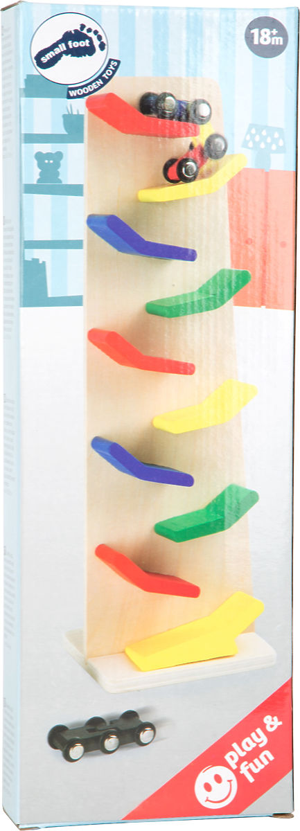 Malí fanúšikovia áut si s touto drevenou kaskádovou vežou prídu na svoje, pretože je tu zábava pre ich oči aj uši. Po uvoľnení malé kĺbové vozidlá schádzajú po rampách. Drevení pretekári sa rútia po dráhe, takže s každým zjazdom deti zažijú veľa zábavy. Hlavné vlastnosti: rozvíja jemnú motoriku, robustné a odolné drevené prevedenie, hračka vhodná aj do škôlok