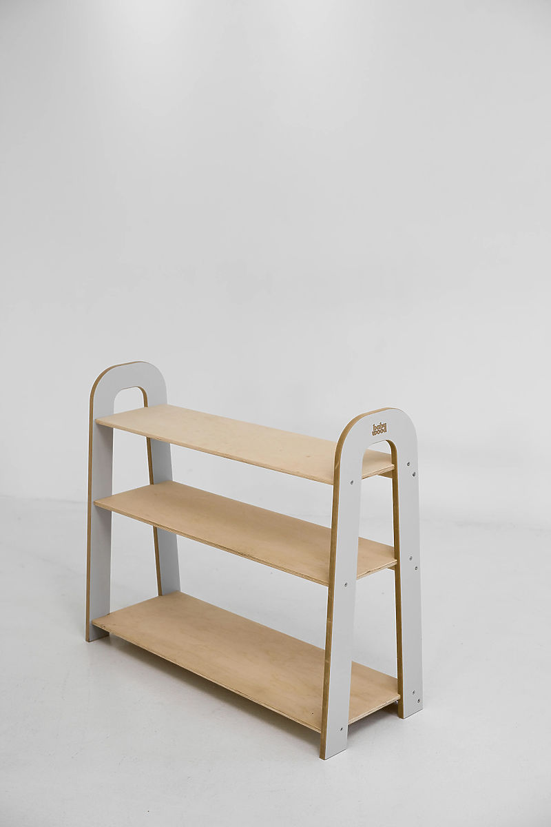 Regál na knihy pre deti s jednoduchým dizajnom a bielou farbou. .. viac
