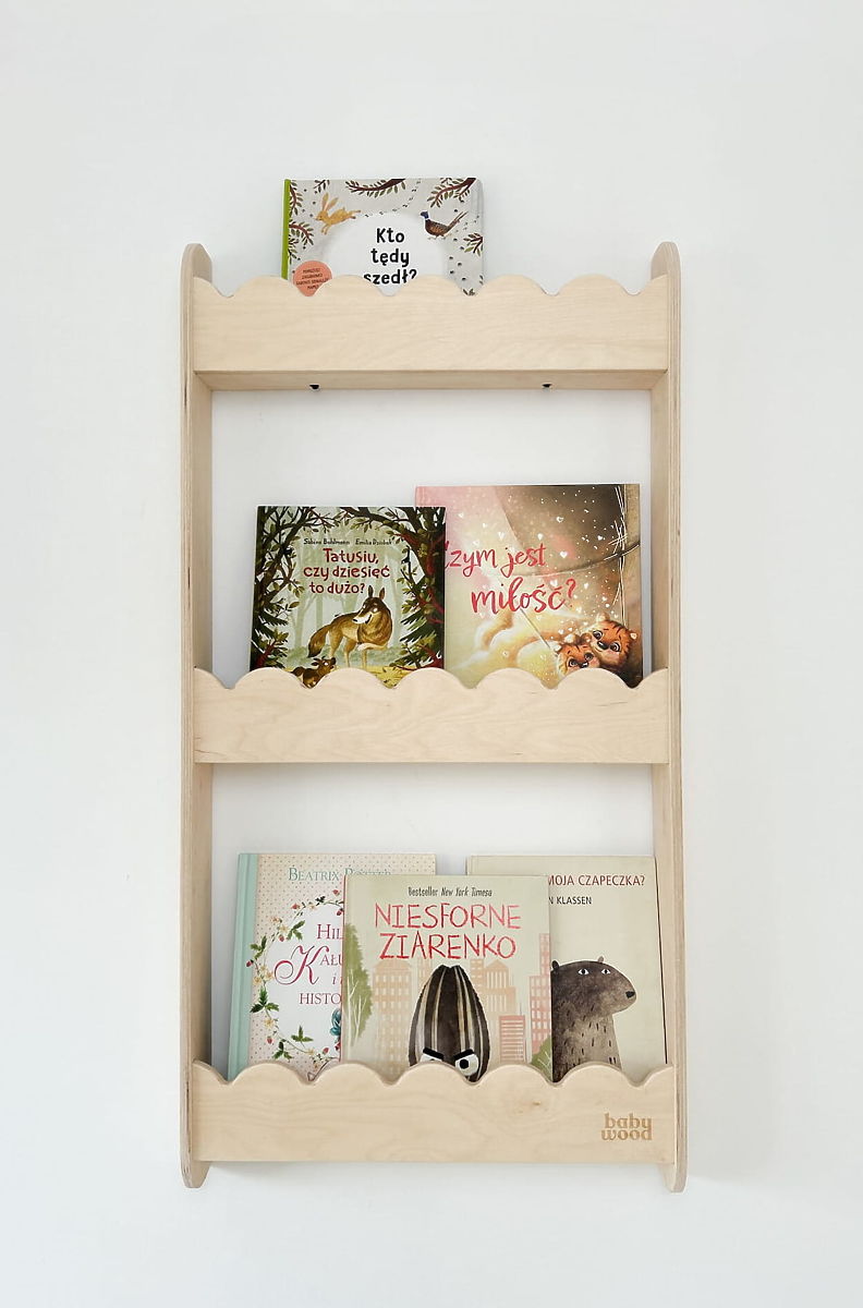 Nástenný regál WAVE M v prírodnej farbe je praktická a dekoratívna knižnica na stenu, ktorá pomáha udržať poriadok v detskej izbe bez toho, aby zaberala miesto na podlahe. Je ideálna pre knihy, hračky, dekorácie či drobné predmety vášho dieťaťa. Montáž na stenu umožňuje mať voľnú podlahu pre hru a ďalšie aktivity. Prírodný vzhľad a kvalitné spracovanie police dodávajú detskej izbe útulný akcent. Zaoblené hrany a hladké povrchy zaisťujú bezpečné používanie aj pre malé deti.