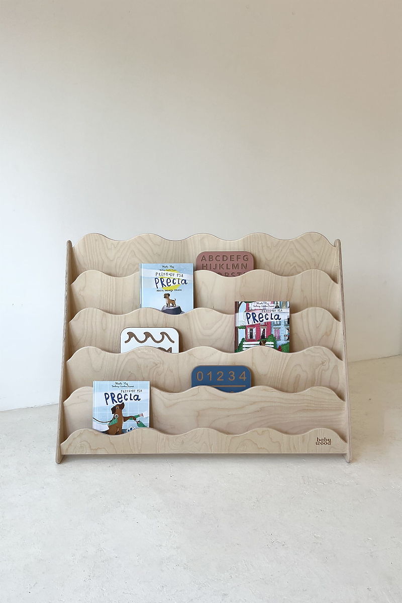 Vytvorte štýlový a prehľadný kútik pre knihy vášho dieťaťa s kniznicou WAVE L. Vďaka otvoreným policiam a vlnitým predným lištám je jednoduché udržať poriadok, pričom police zároveň fungujú ako dekoratívny prvok detskej izby. Knižnica podporuje samostatnosť dieťaťa – malý čitateľ si sám vyberá svoje obľúbené knihy a rozvíja svoju predstavivosť a čitateľské návyky.