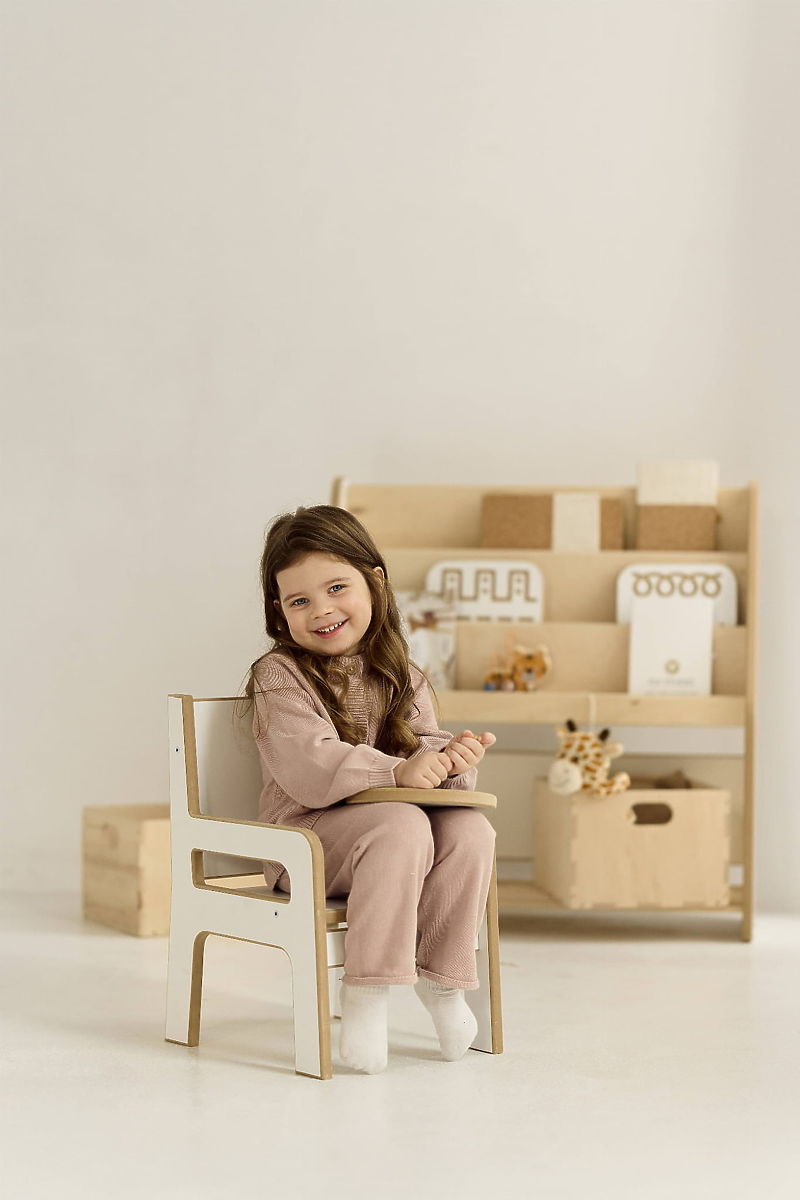 Drevená detská stolička je vhodná pre deti rôzneho veku – poslúži ako ročnému dieťaťu, ktoré objavuje svet, tak aj staršiemu, kreatívnemu predškolákovi. Poskytuje pevnú oporu chrbta a zároveň zabezpečuje pohodlné sedenie pri hraní, kreslení alebo stolovaní. Skvele sa uplatní aj v kuchyni alebo kúpeľni – dieťa si môže stúpnuť na sedák a ľahko dosiahne na pracovnú dosku či umývadlo. Všetky hrany sú starostlivo zaoblené, aby bola zabezpečená maximálna bezpečnosť malých používateľov.