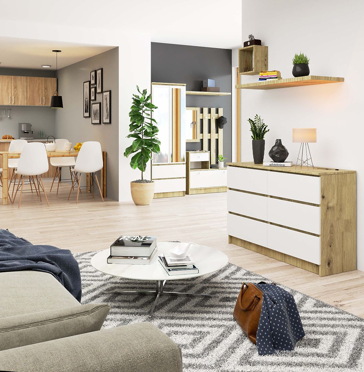 Komoda s 6 zásuvkami v kombinácii dubu Artisan a bielej. .. viac