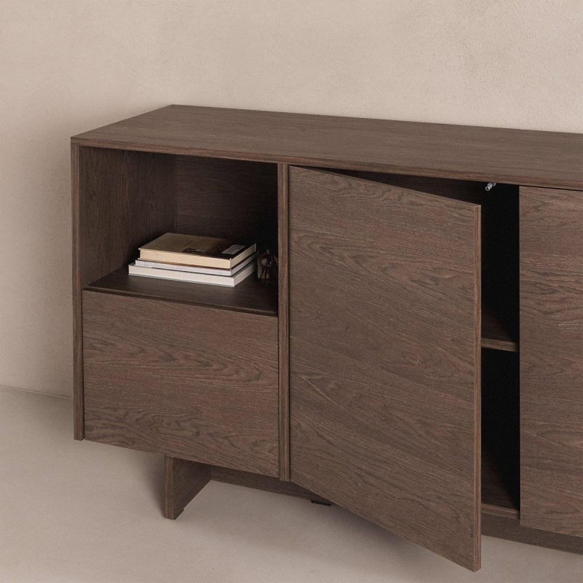 Komoda Kanso predstavuje čistú formu a nadčasový minimalizmus. Jemné prevedenie a hladké čelné plochy bez úchytiek z nej robia nielen funkčný úložný priestor, ale aj dizajnový prvok interiéru. Elegancia, jednoduchosť a uvedomelá voľba v jednom.