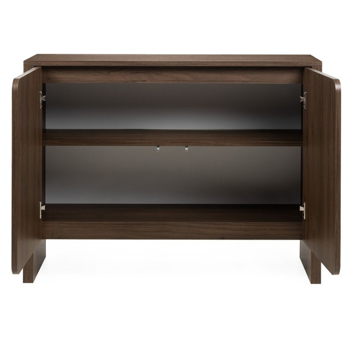 Dvojdverová komoda Moku s orechovou farbou a zaoblenými plochami. .. viac
