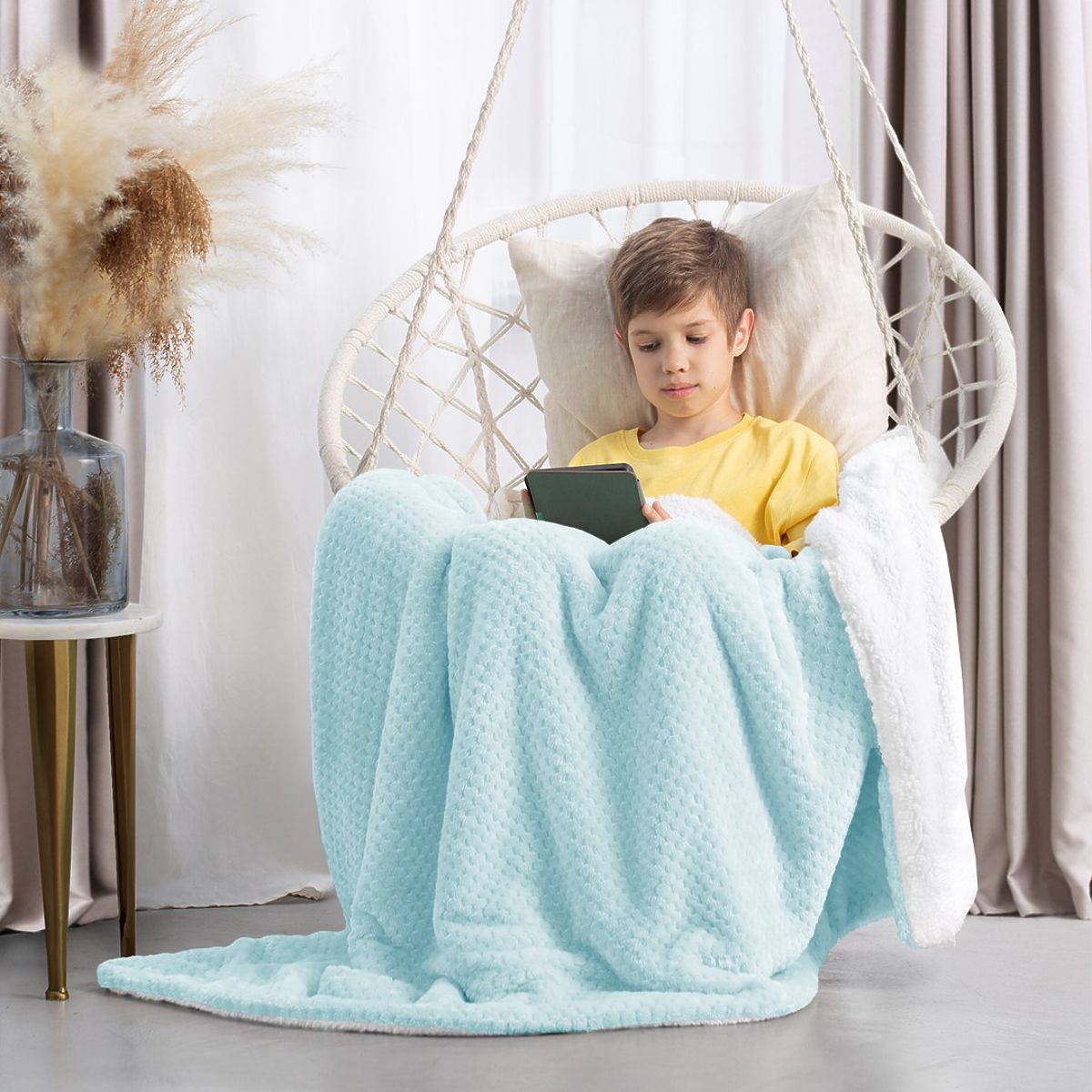 Modrá prikrývka SHLEEPY s jemným žakárovým vzorom pre pohodlie a teplo. .. viac