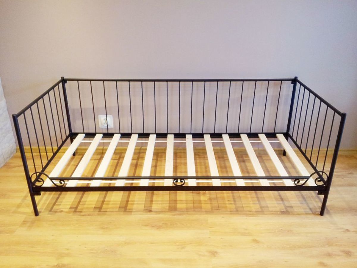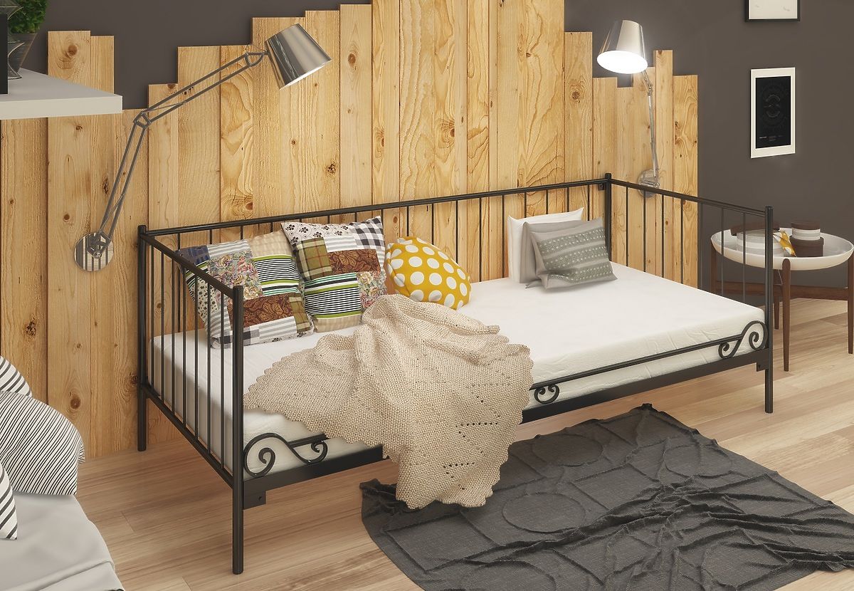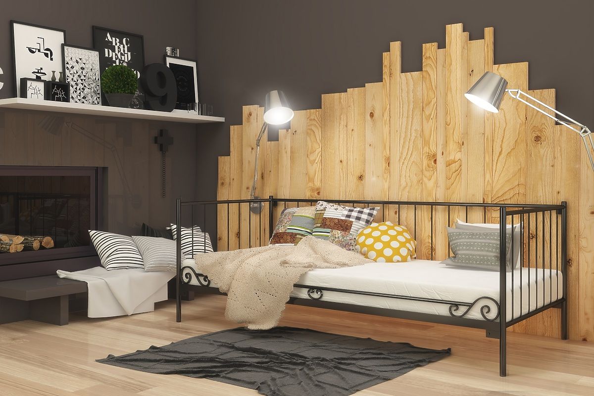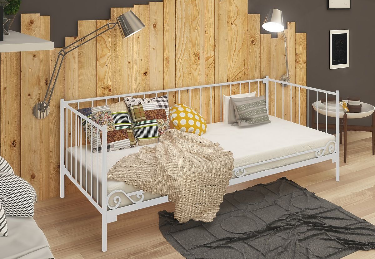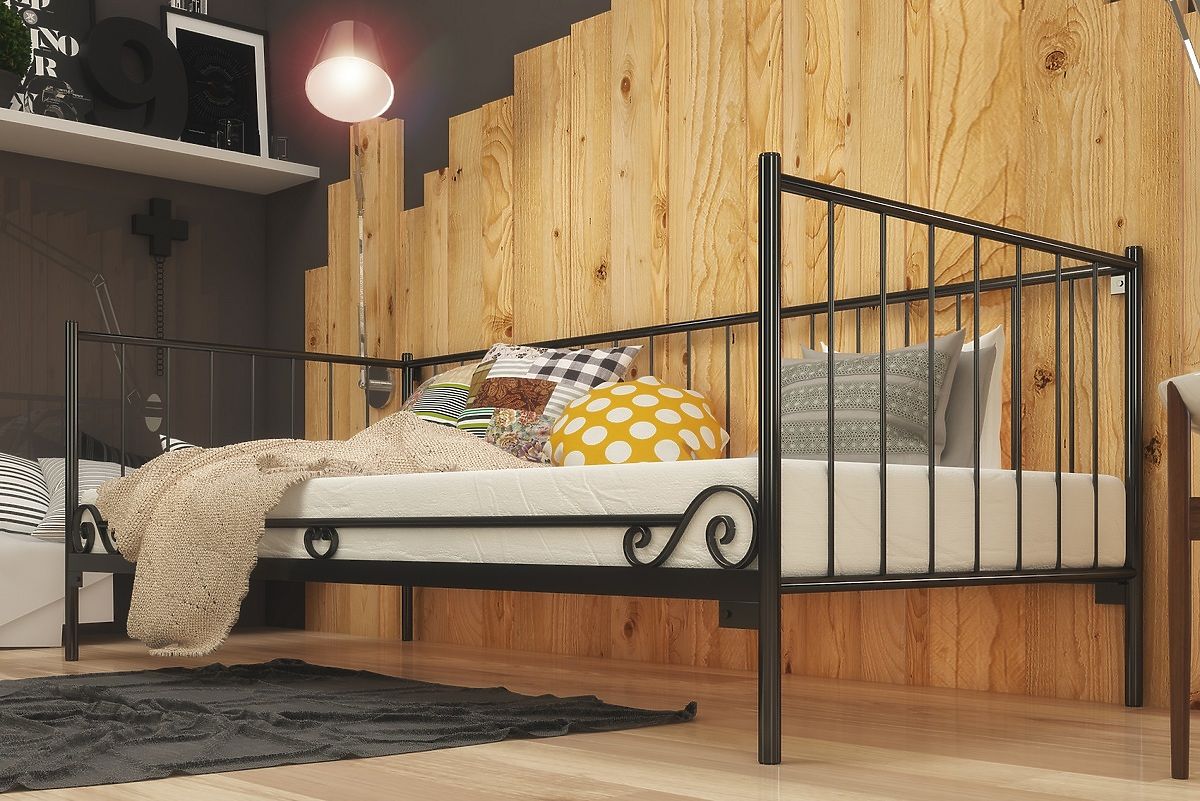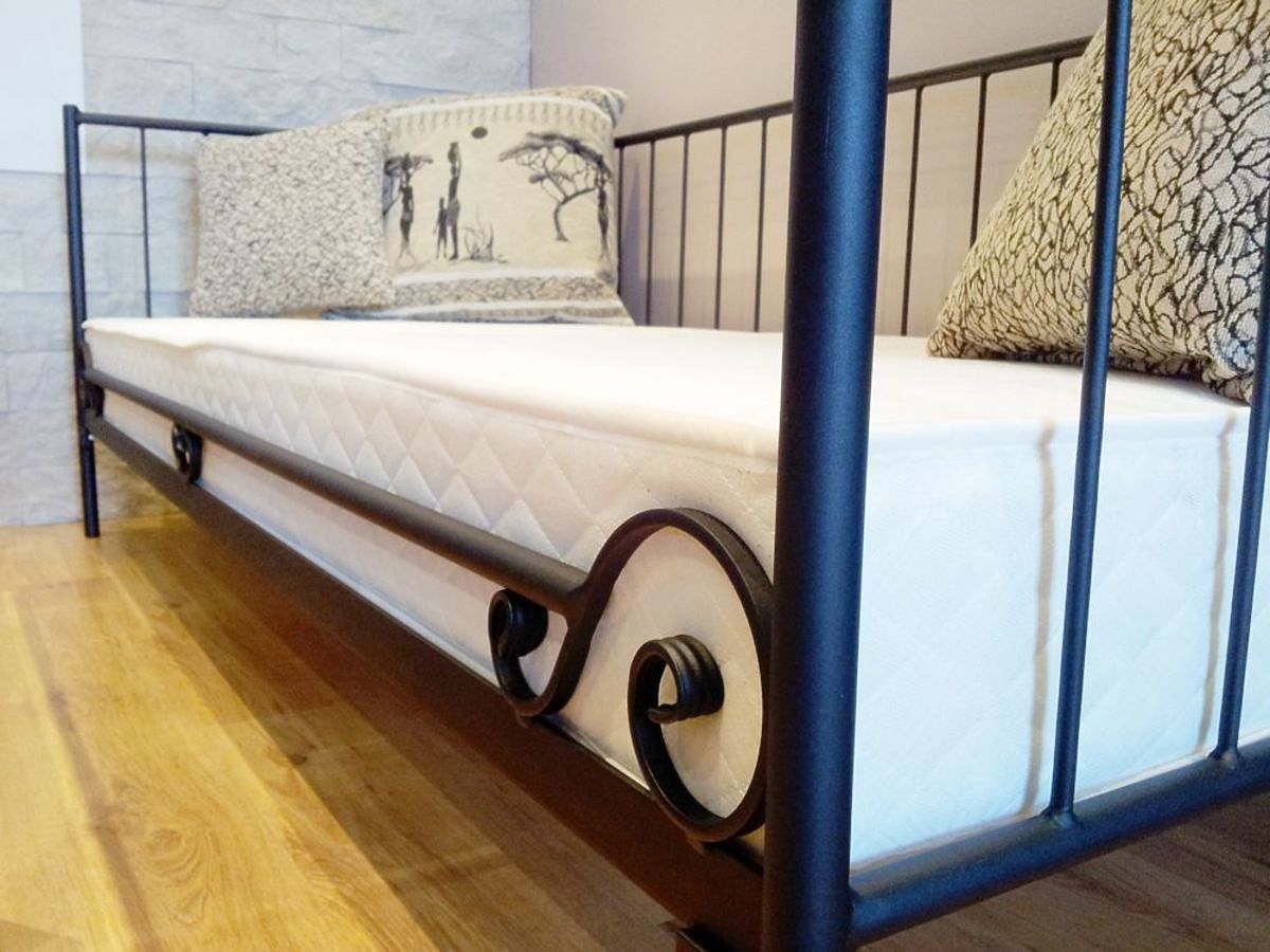 Elegantná a jednoduchá kovová posteľ pre všetkých tých, ktorí ocenia minimalizmus v dizajne interiéru. Lôžko môže tiež slúžiť ako pohovka, pretože má na jednej strane kovového zábranu tvoriaca zadnú stenu postele. Posteľ je vyrobená z vysoko kvalitnej ocele. Kovový rám sa skladá zo štyroch častí spojených skrutky, ktoré robí konštrukciu veľmi pevnú a kvalitné. Nohy postele sú vyrobené z kovu kruhového prierezu s priemerom 27 mm a priečky majú priemer 21 mm. Výplne tvoria kovové tyče s priemerom 8 mm. Posteľ je dodávaná spolu s dreveným latkovým roštom.