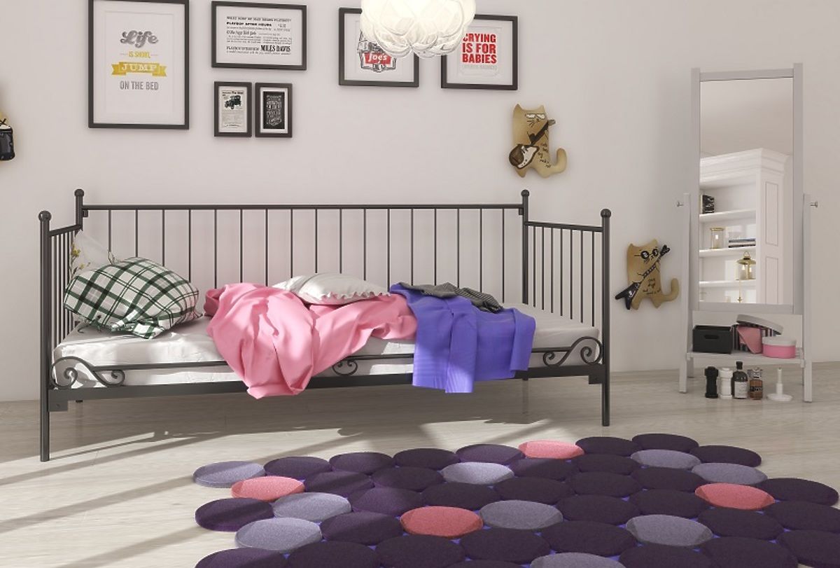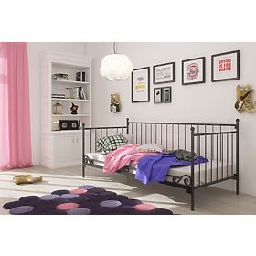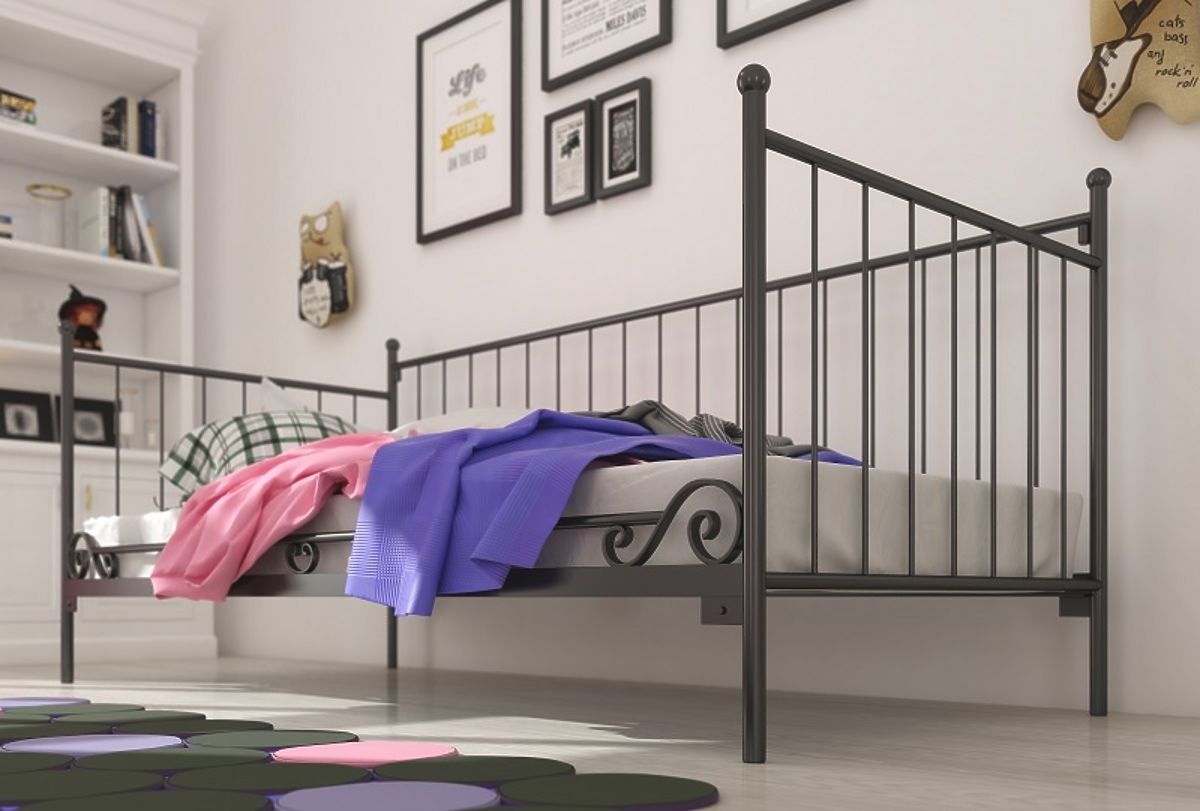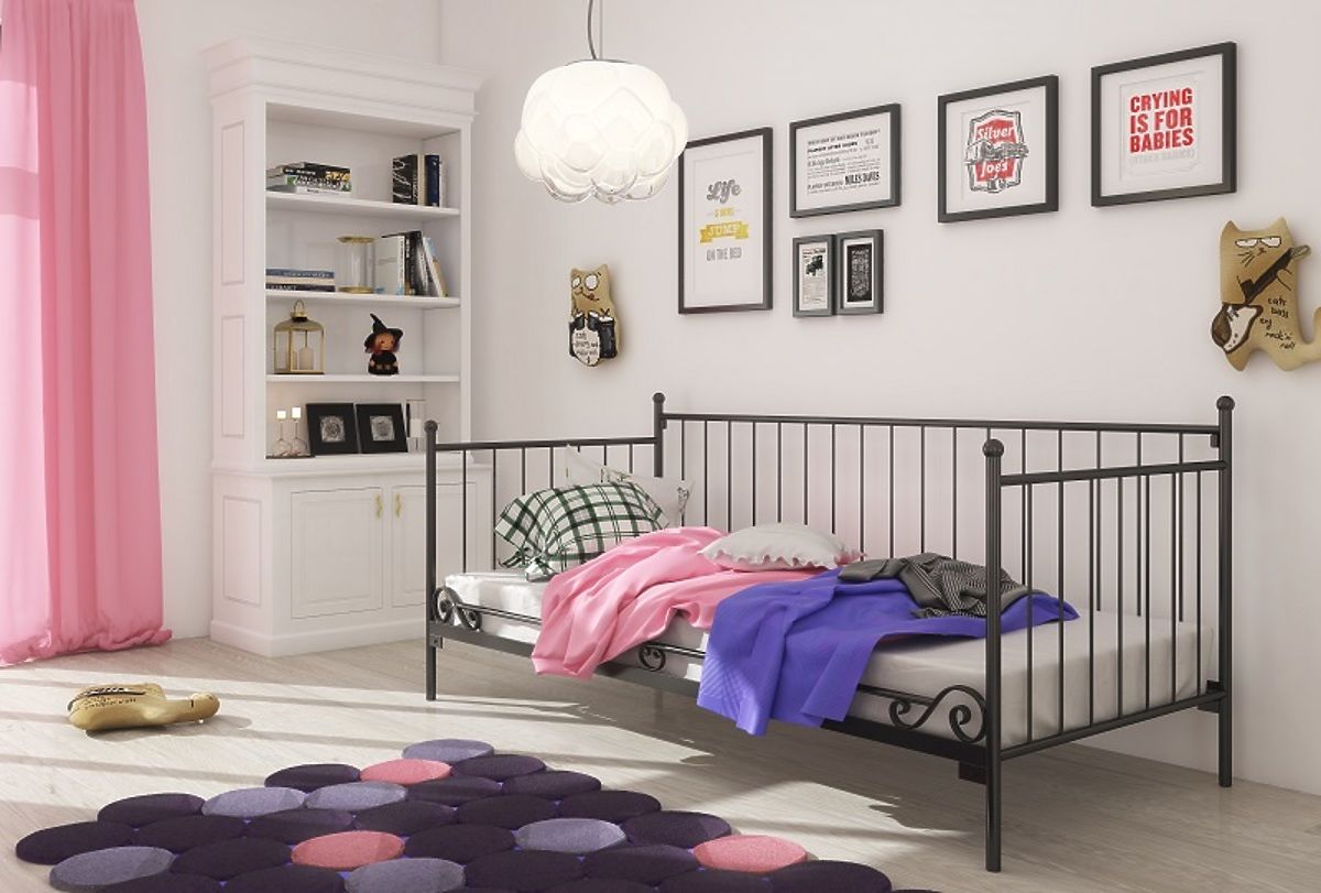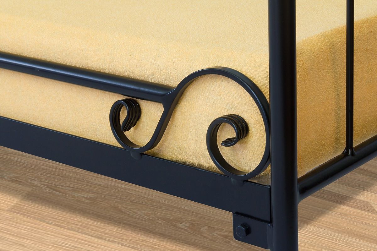 Univerzálny dizajn, zvýšené operadlo a zakončenie vo forme postele sú späť a skončiť vo forme guličiek. Unikátny, veľmi populárne, a jednoduchá konštrukcia prináša veľmi príjemnú atmosféru do detskej izby. Tento model kovové postele vyzerá skvele na záhrade alebo na terase. Posteľ je vyrobená z vysoko kvalitnej ocele. Kovový rám sa skladá zo štyroch častí spojených skrutky, ktoré robí konštrukciu veľmi pevnú a kvalitné. Nohy postele sú vyrobené z kovu kruhového prierezu s priemerom 27 mm a priečky majú priemer 21 mm. Posteľ je dodávaná spolu s dreveným latkovým roštom.