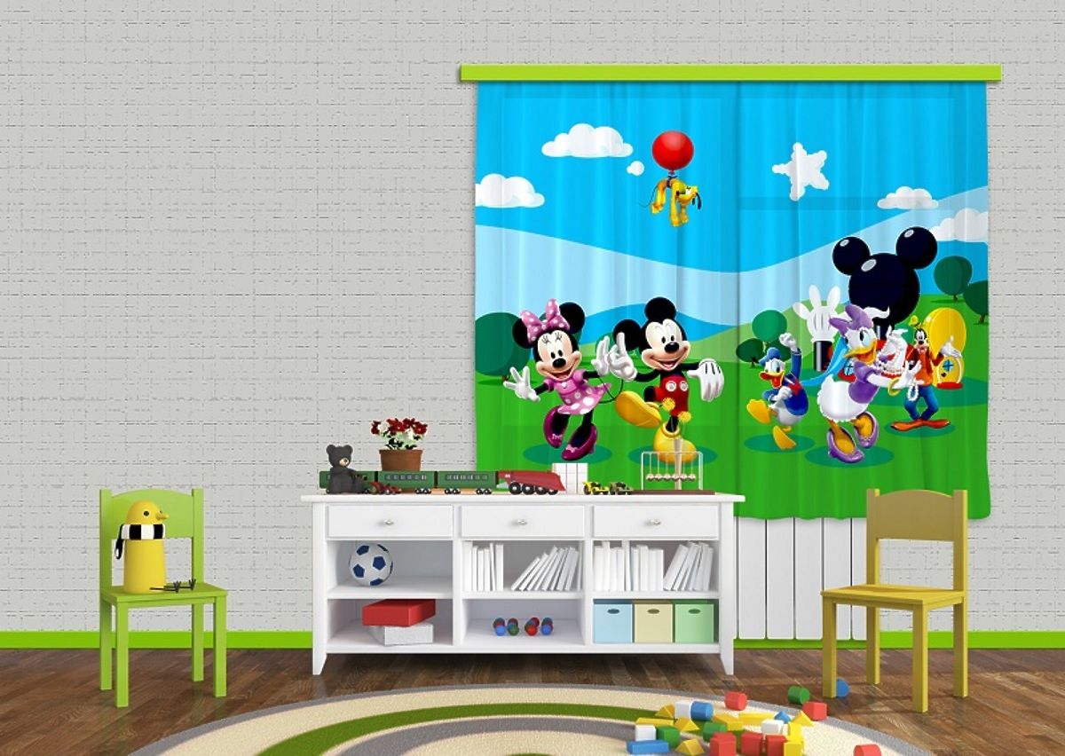 Krásna záclona nebo závěs s motívom myšiaka Mickeyho.