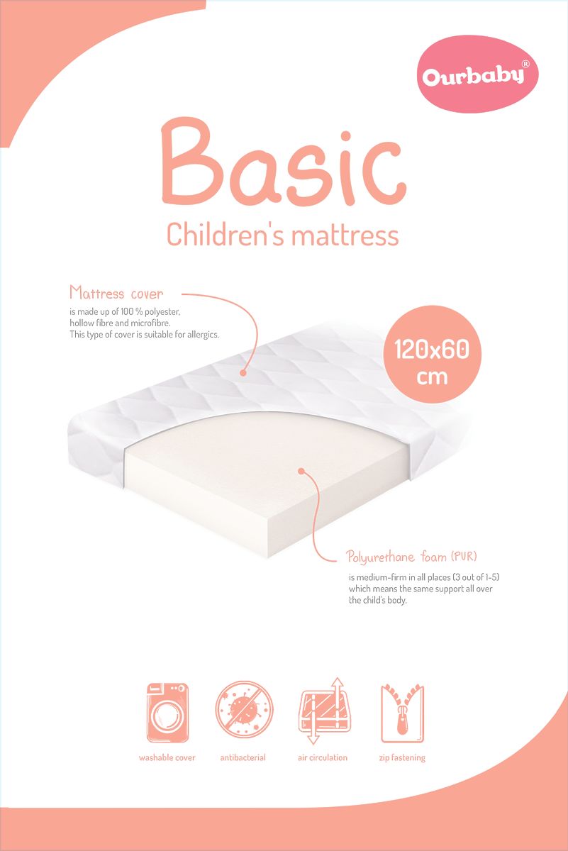 Rad BASIC - Základný rad matracov našej značky Ourbaby® , pod ktorým produkujeme nielen matrace. Penové matrace BASIC ponúkame v rozmeroch pre deti každého veku. PUR pena matraca je stredne tuhá. Detské matrace BASIC sú najlepšou voľbou pokiaľ zháňate kvalitný matrac za prijateľnú cenu.