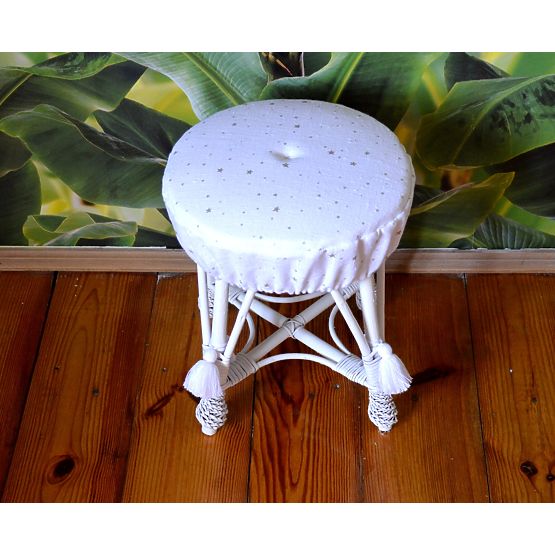 Prútený taburet, ktorý sa vyznačuje vysokou pevnosťou a odolnosťou proti poškození. Natřené na báze vodnej farby, bez prídavku rozpúšťadla, takže je bezpečný pre deti a životné prostredie.