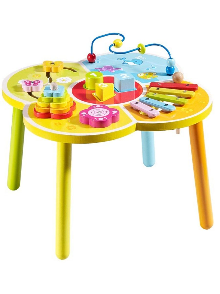 Drevený edukačný stolček Baby Mix. Stolček je v tvare kvetinky a je plný rôznych farieb. Hračka je vhodná pre deti od 36 mesiacov. Rozmer: cca 45x43 cm.Výška: cca 28 cm. Prinášajú im nielen zábavu, ale prospievajú deťom v ich psychomotorickom vývoji.